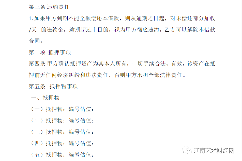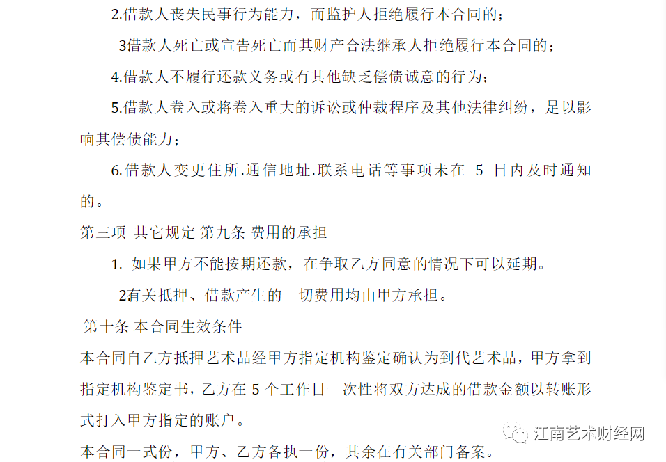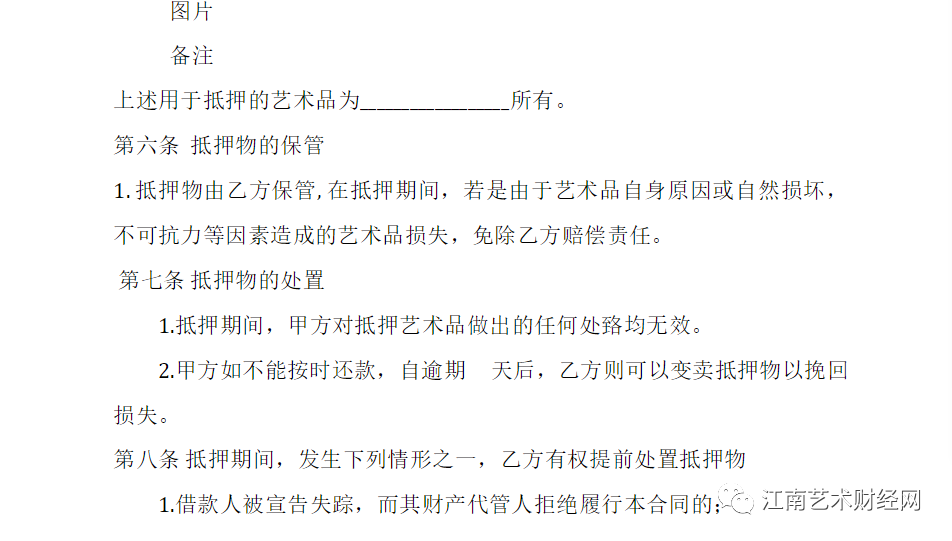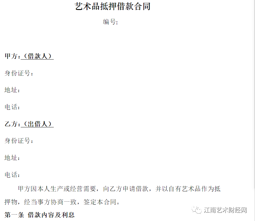 (各大銀行藝術(shù)品抵押貸款的范本合同)